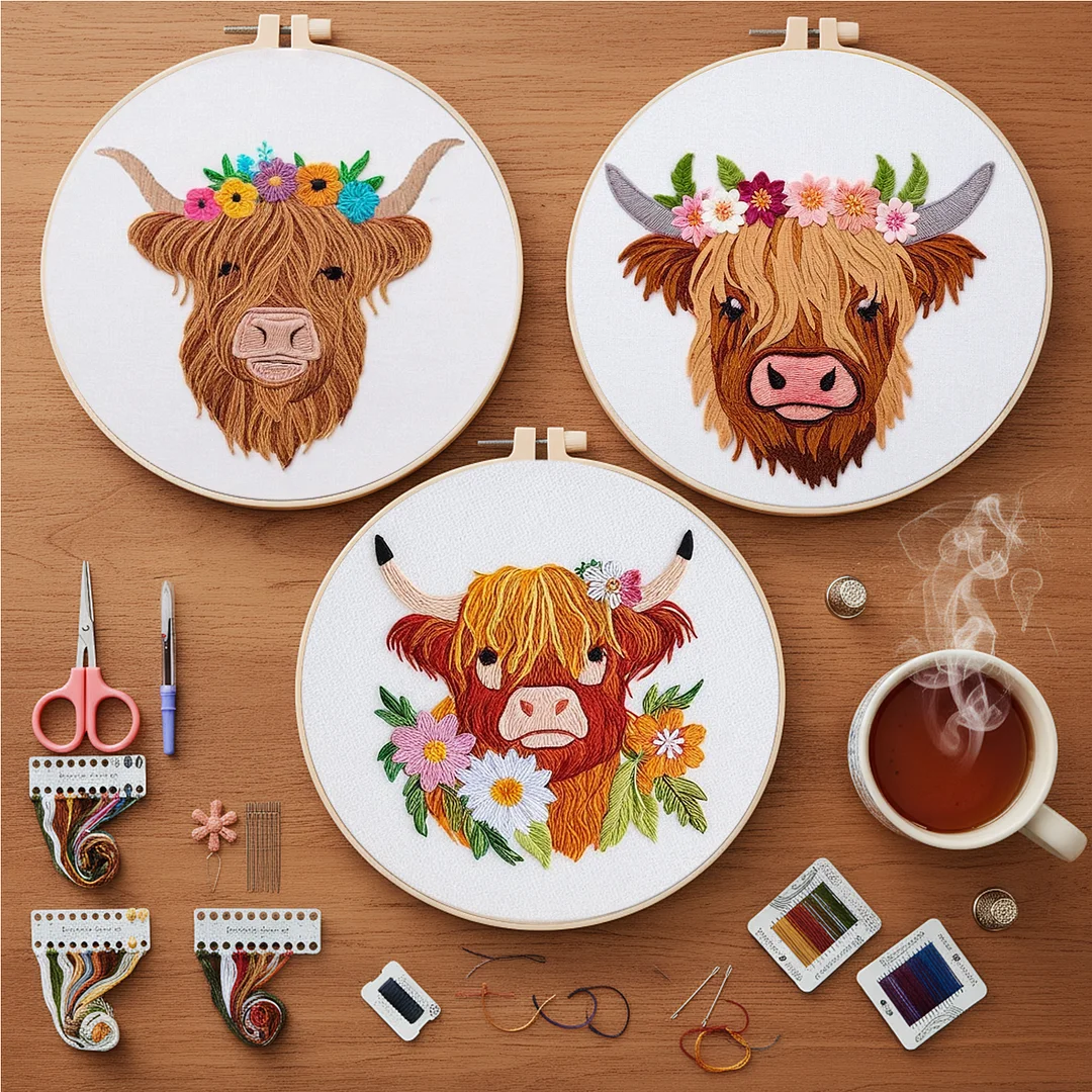 3pcs Yak-DIY Embroidery Kit with Pattern Cotton Threads Needles Hoop Scissor 30*30cm