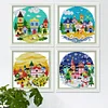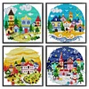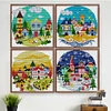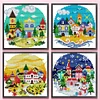(4pcs) Village-14CT Stamped Cross Stitch 16*16cm(Bundle Sale)