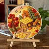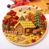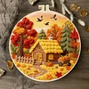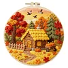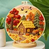 Autumn Cottage-DIY Embroidery Kit with Pattern Cotton Threads Needles Hoop Scissor 29*29cm