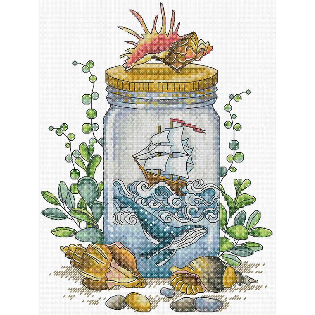 Sailboat In A Bottle-14CT Stamped Cross Stitch 23*31cm/9.06*12.2in