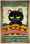 I Like To Stay In Bed Black Cat Retro Poster Quotes - 11CT Stamped Cross Stitch 40*55cm/15.75*21.65in(Poster Cross stitch)