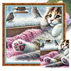 Cat And Bird By Window-11CT Stamped Cross Stitch 40*40cm/15.75*15.75in