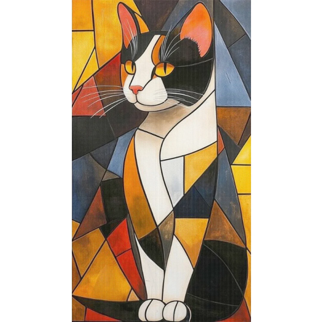 Cat Glass Painting-11CT Stamped Cross Stitch 40*70cm (Big Size)