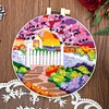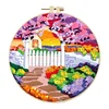 Purple Flower Sunset-DIY Embroidery Kit with Pattern Cotton Threads Needles Hoop 30*30cm/11.81*11.81in