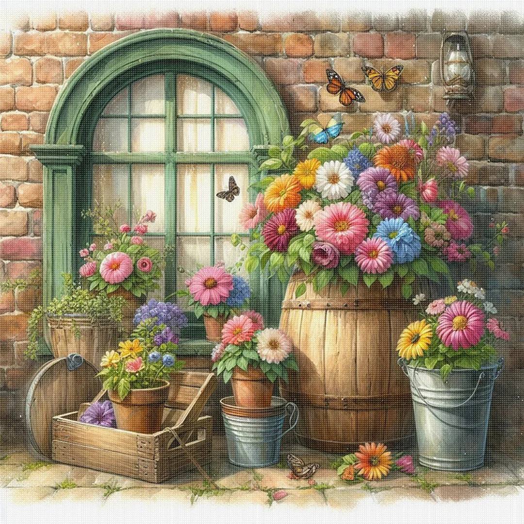 Flowers By Window-11CT Stamped Cross Stitch 40*40cm/15.75*15.75in