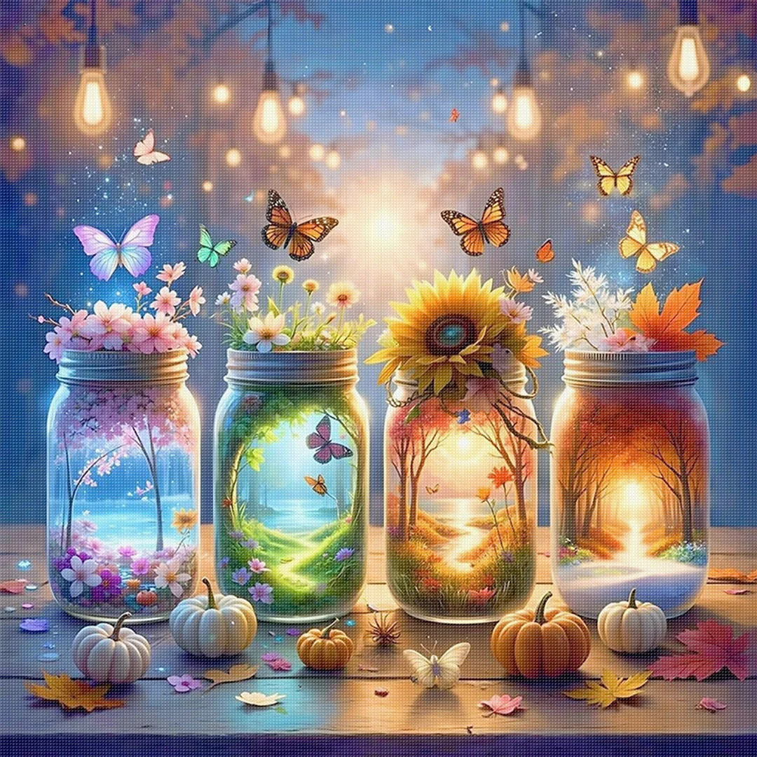 Four Seasons Glass Bottle-11CT Stamped Cross Stitch 45*45cm/17.72*17.72in