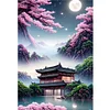 Ancient Building Under Cherry Tree - 11CT Stamped Cross Stitch 30*43cm/11.81*16.93in