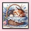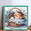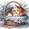 Cat Sleeping In A Blue Basket-11CT Stamped Cross Stitch 40*40cm/15.75*15.75in