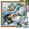 (Stamped/Counted) Cat Sleeping Under The Quilt-11CT Cross Stitch 40*40cm/15.75*15.75in