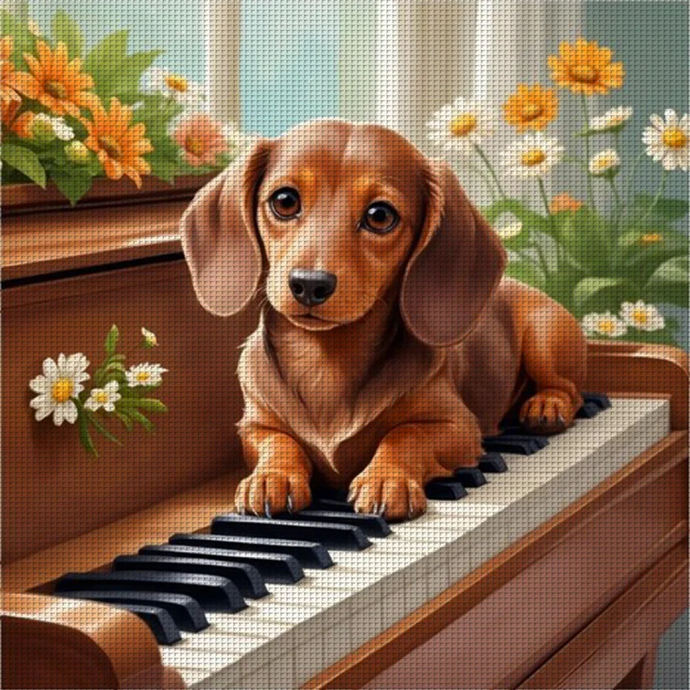 Dachshund Playing Piano-11CT Stamped Cross Stitch 40*40cm/15.75*15.75in