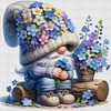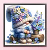 Blue-Purple Flower Gnome-11CT Stamped Cross Stitch 45*45cm/17.72*17.72in