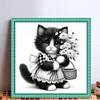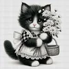 Black Cat Holding Flowers-11CT Stamped Cross Stitch 40*40cm/15.75*15.75in