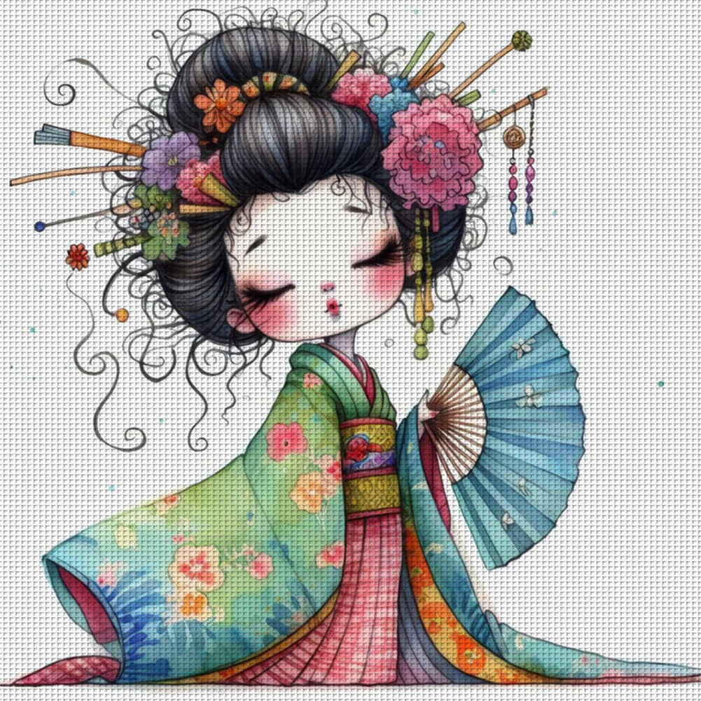 Cartoon Japanese Geisha-11CT Stamped Cross Stitch 40*40cm/15.75*15.75in
