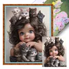 Little Girl And Cat-11CT Stamped Cross Stitch 40*50cm/15.75*19.69in