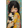 Girl And Cat-11CT Stamped Cross Stitch 40*70cm/15.75*27.56in(Big Size)