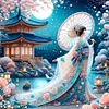 Kimono Woman Holding An Umbrella-11CT Stamped Cross Stitch 50*50cm/19.69*19.69in