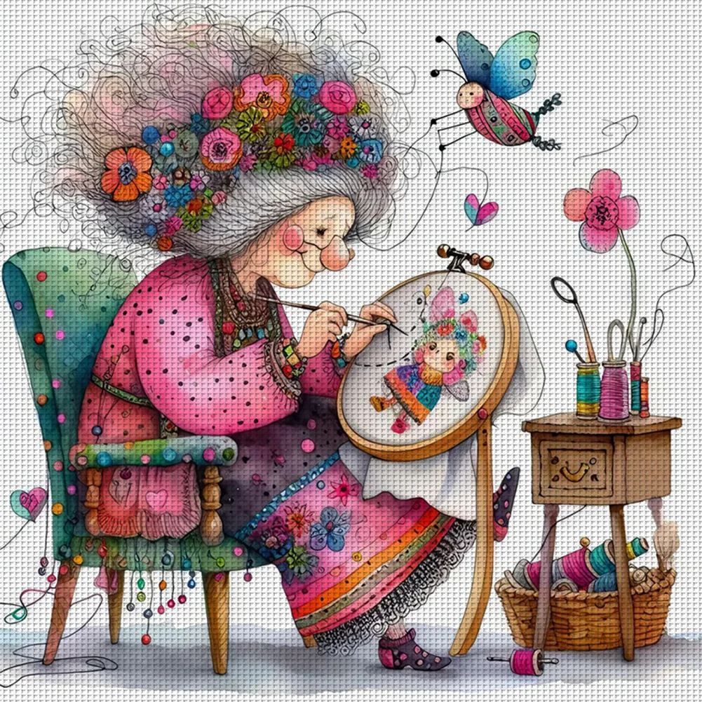 Sewing Grandma-11CT Stamped Cross Stitch 45*45cm/17.72*17.72in