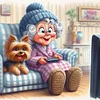 Old Lady Watching Tv-11CT Stamped Cross Stitch 40*40cm/15.75*15.75in