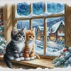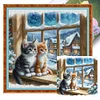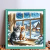 Cat By Window-11CT Stamped Cross Stitch 50*50cm/19.69*19.69in