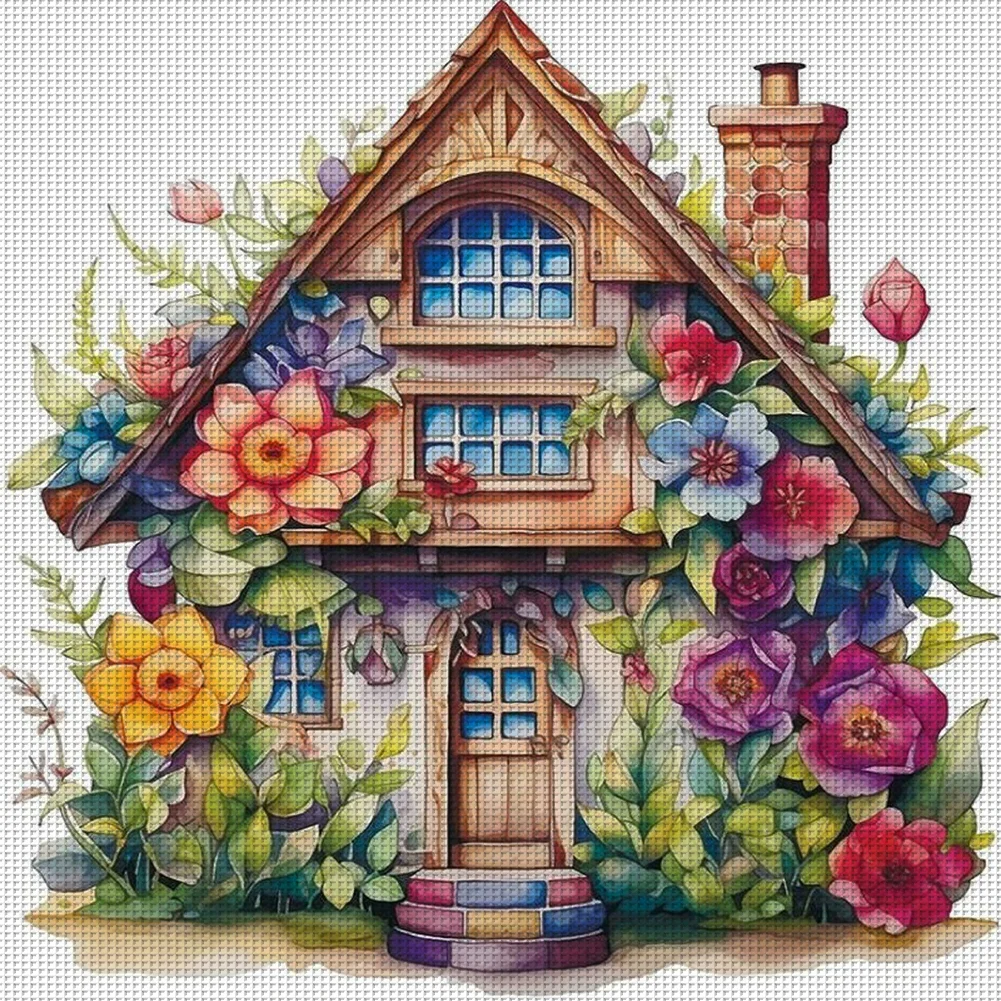 Spring Flower Cottage-14CT Stamped Cross Stitch 40*40cm/15.75*15.75in