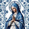 (Stamped/Counted) Blue And White Porcelain-Virgin Mary-14CT Cross Stitch 40*40cm/15.75*15.75in