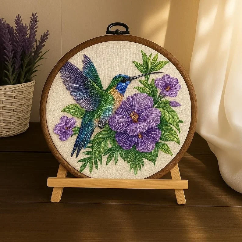 Create a stunning piece of bead embroidery art with this beautiful DIY kit featuring a vibrant hummingbird and delicate purple flowers. Perfect for both beginners and experienced crafters, this bead embroidery kit includes everything you need to bring the design to life. Relax, enjoy the creative process, and craft a sparkling artwork that will brighten your home or make a thoughtful handmade gift.