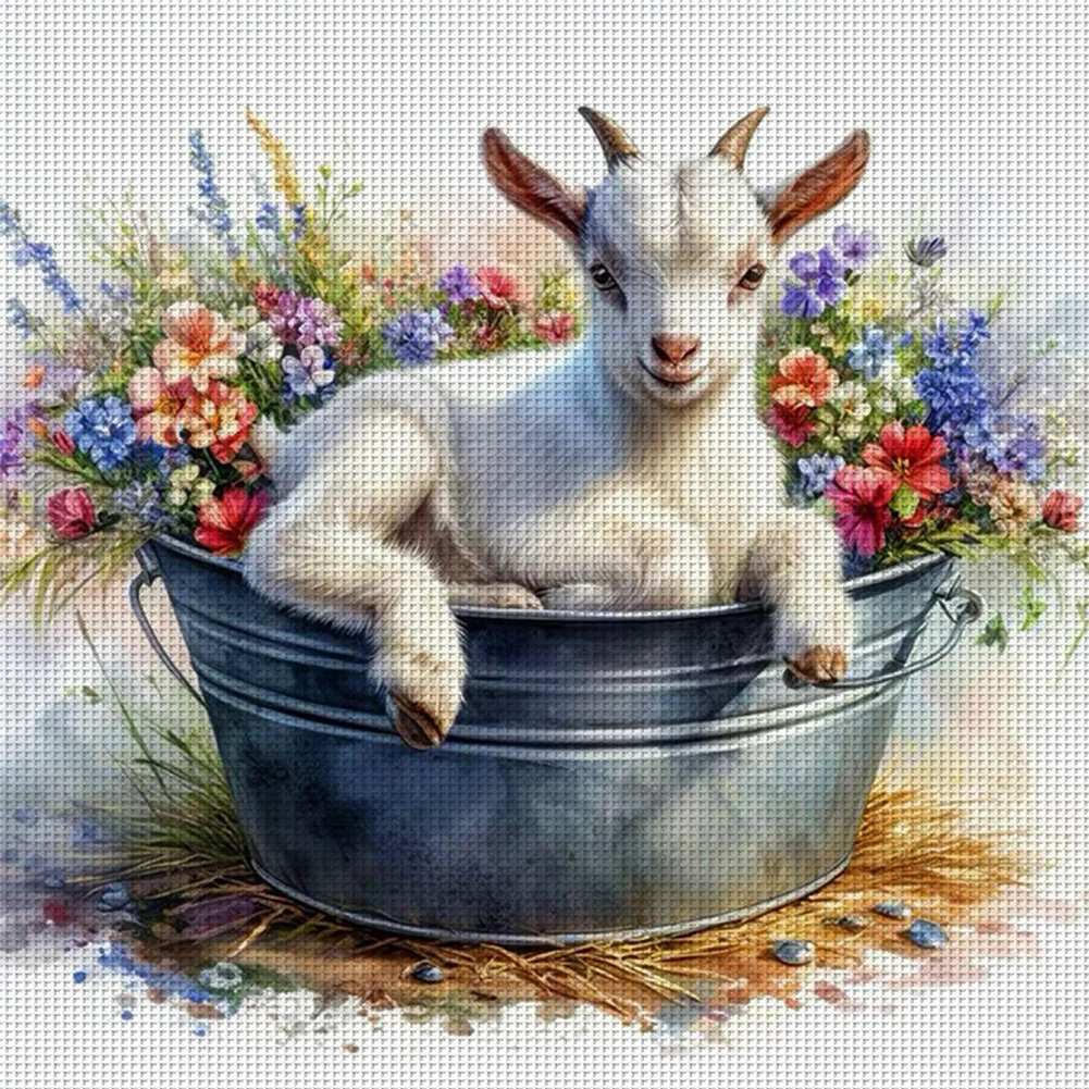 Lamb Flowers-11CT Stamped Cross Stitch 40*40cm