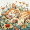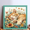 Orange Cat & Flowers-11CT Stamped Cross Stitch 40*40cm