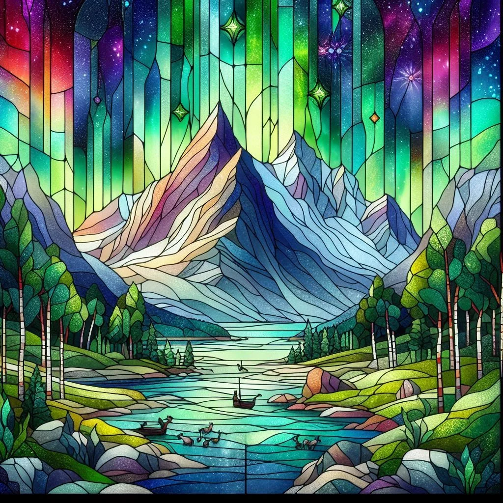 Aurora Mountain Scenery Glass Painting-11CT Stamped Cross Stitch 45*45cm