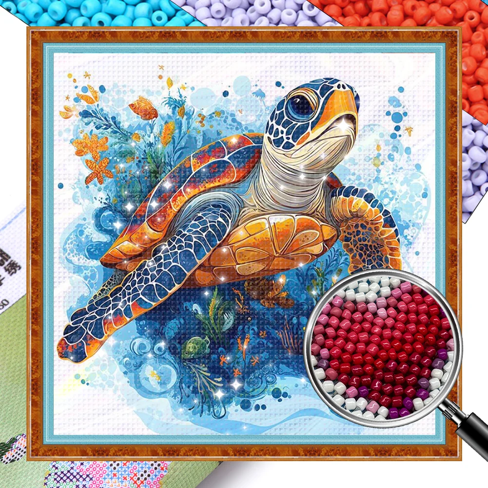Turtle-Partial 11CT Stamped Cross Stitch Bead Embroidery 36*36cm/14.17*14.17in