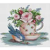 Bird By The Teacup-14CT Stamped Cross Stitch 48*44cm/18.9*17.32in