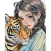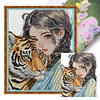 Girl And Tiger-14CT Stamped Cross Stitch 37*47cm/14.57*18.5in
