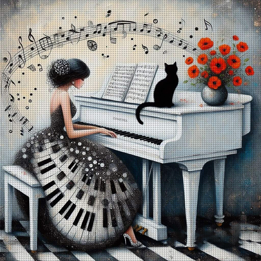 (Stamped/Counted) Piano Girl-11CT Cross Stitch 40*40cm