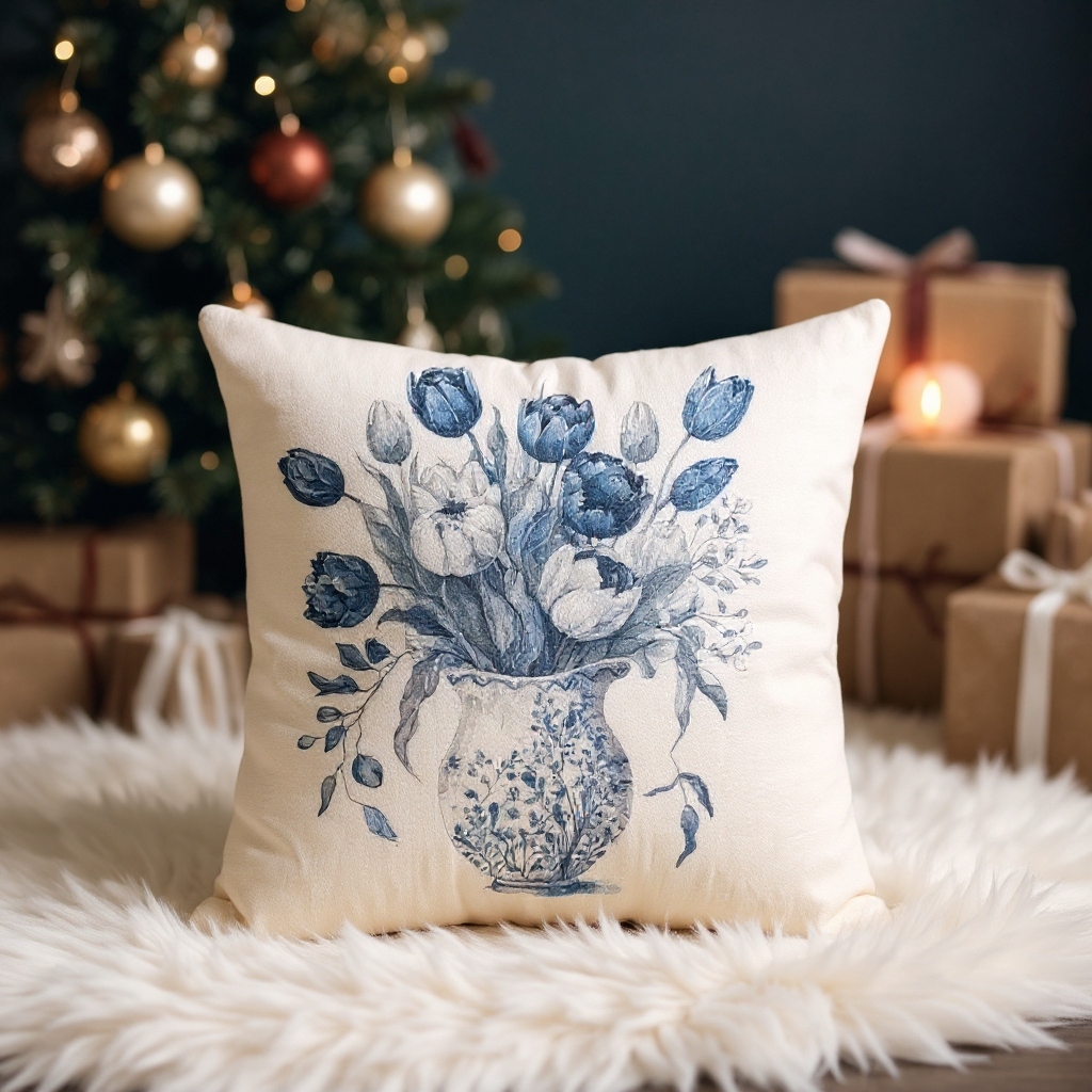 11CT Flower Cat Stamped DIY Cross Stitch Pillow Case Kits Animal Printed Pillow Cushion Cover for Sofa Car Bedroom