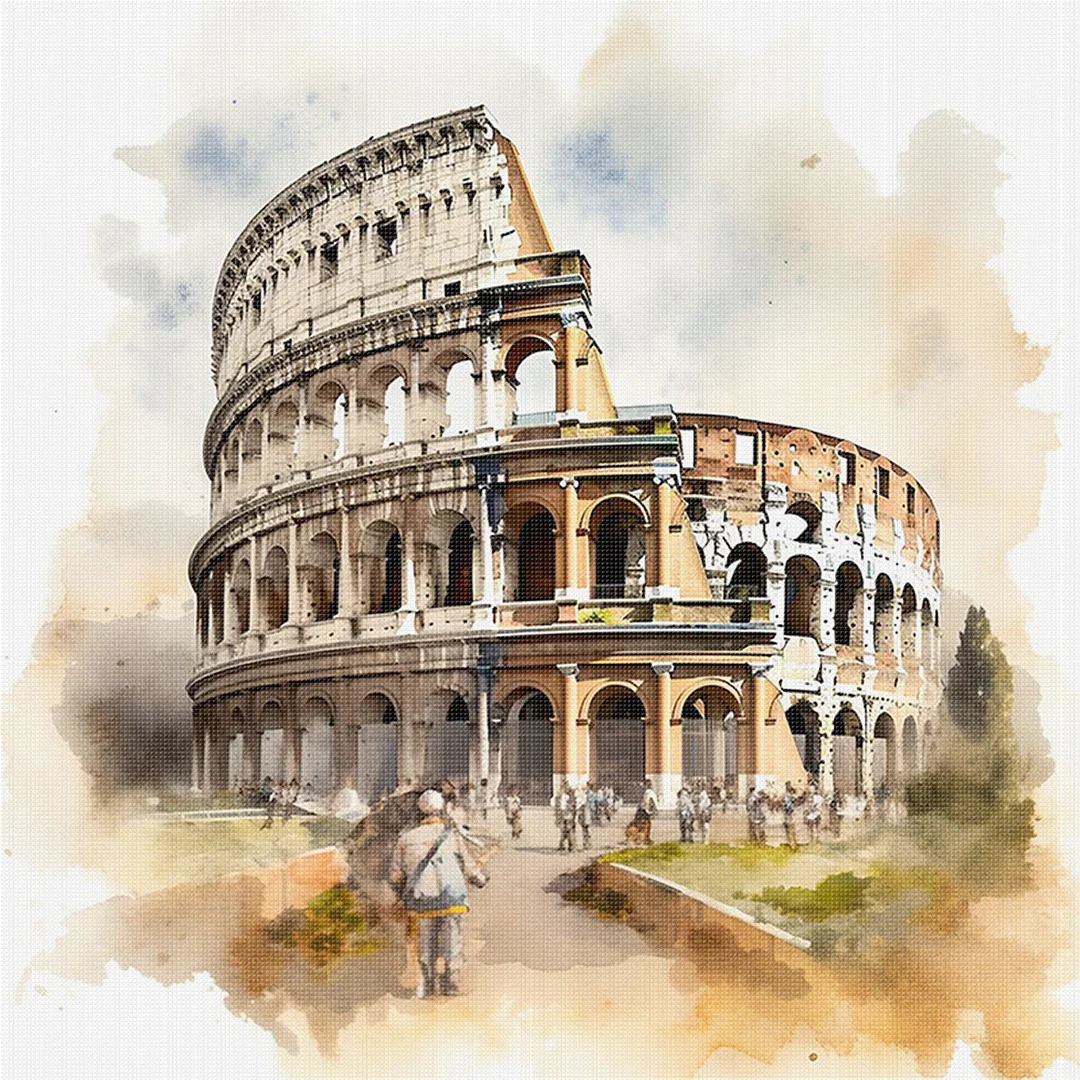 Roman Colosseum-18CT Stamped Cross Stitch 25*25cm/9.84*9.84in
