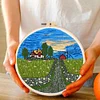 Rural Life-DIY Embroidery Kit with Pattern Cotton Threads Needles Hoop 30*30cm/11.81*11.81in