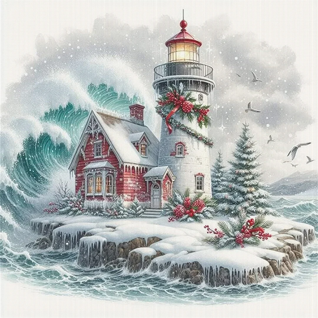 Winter Lighthouse-11CT Stamped Cross Stitch 45*45cm/17.72*17.72in