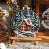 Xmas House-DIY Embroidery Kit with Pattern Cotton Threads Needles Hoop 30*30cm/11.81*11.81in