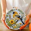 Yellow Birds-DIY Embroidery Kit with Pattern Cotton Threads Needles Hoop 30*30cm/11.81*11.81in